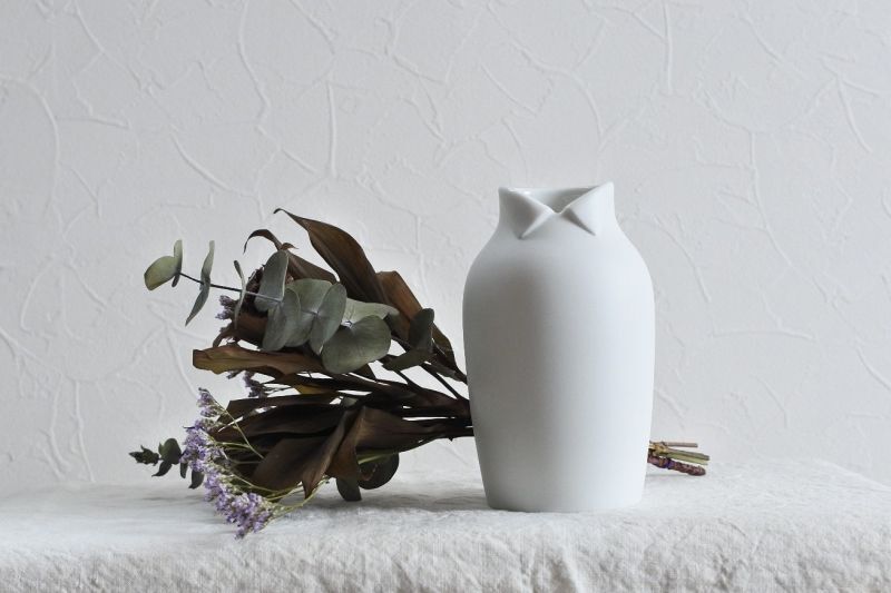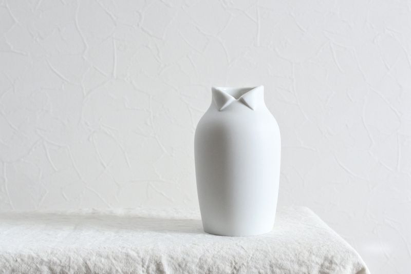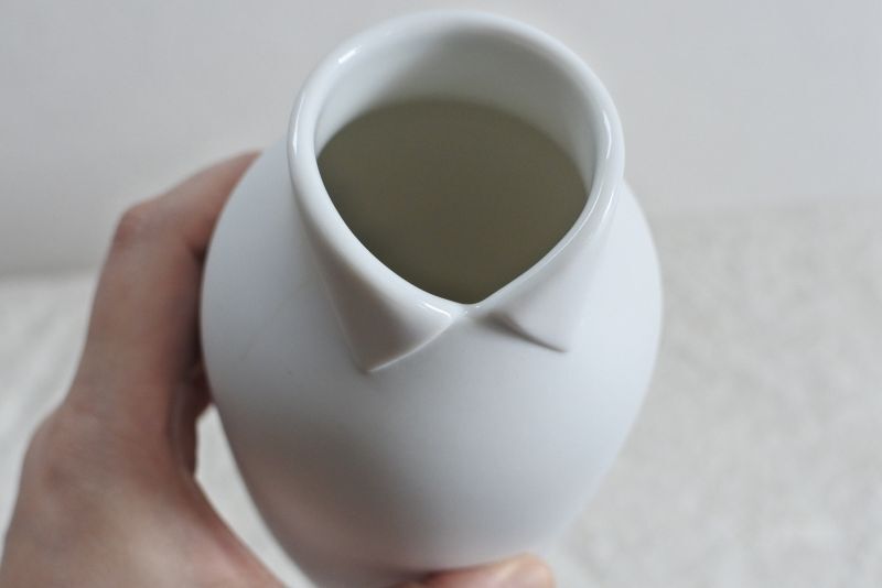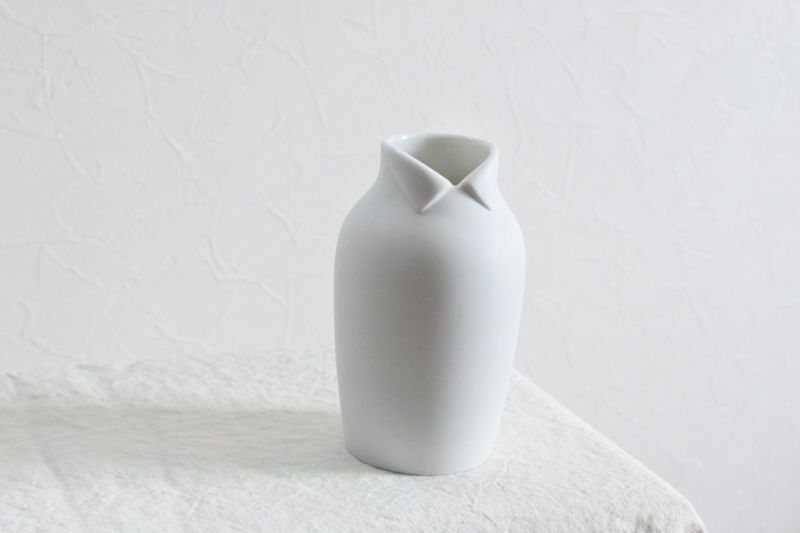 洋服を着たように見えるキュートな襟付きの花器です。
