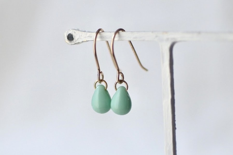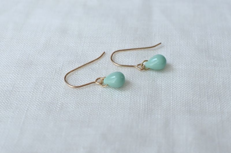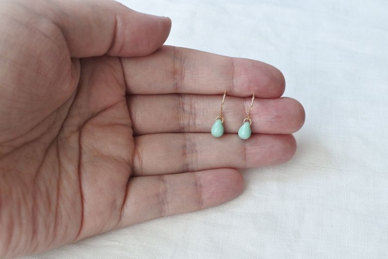 ドロップ型のチェコビーズの1粒耳飾り、こちらはターコイズカラーです。