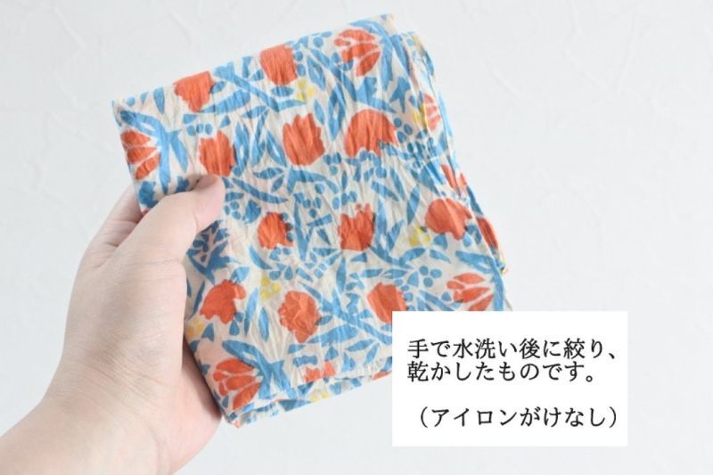 全て手作業の為、染ムラやスタンプの境目などが少し出ていますが、それがブロックプリントの良さでもあり、風合いとなっております。
