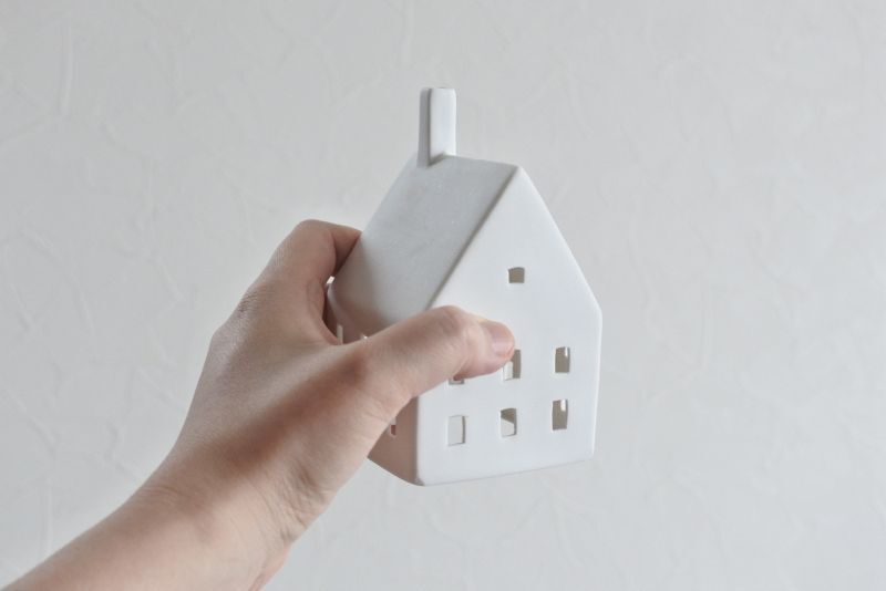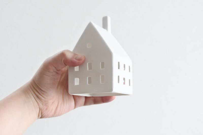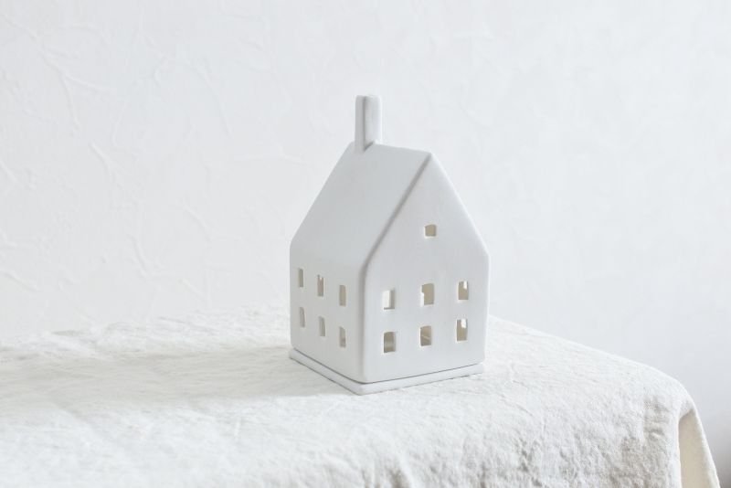 ドイツのライフスタイルブランド・レダー社の、素焼きの磁器でできた家のカタチが愛らしいキャンドルホルダー。