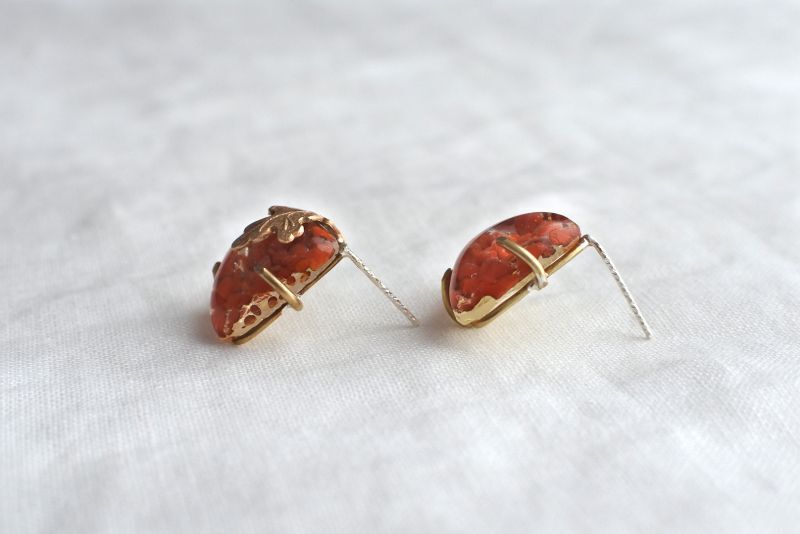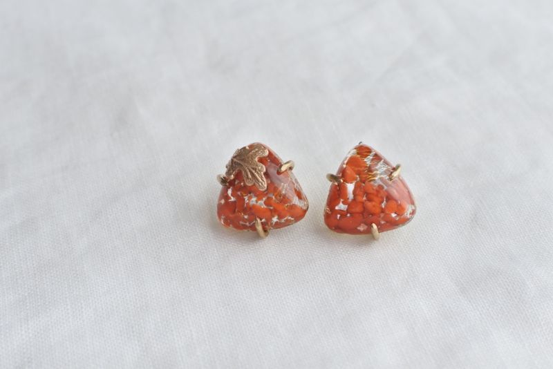 素材:ジャパンヴィンテージガラスカボション(50年以上前)、真鍮(枠)、silver925(ポスト)、シリコンキャッチ