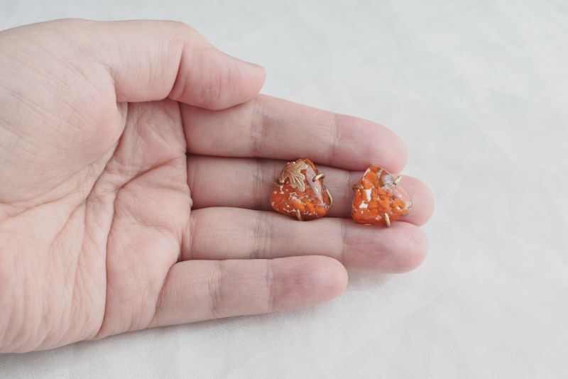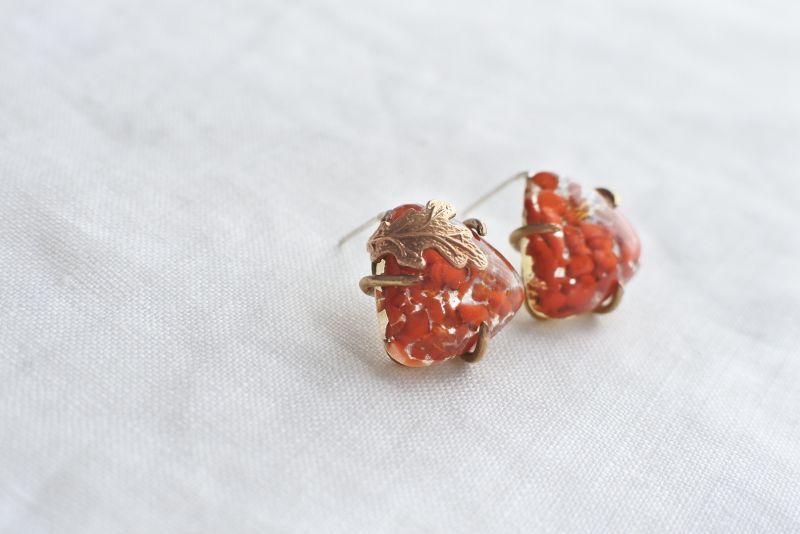 ガラス特有の奥行きと、内部に見える独特な模様が耳元をさりげなく飾ります。