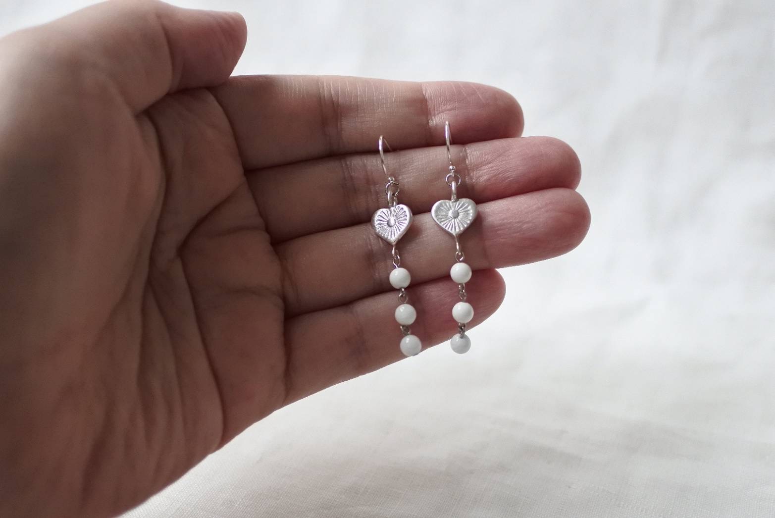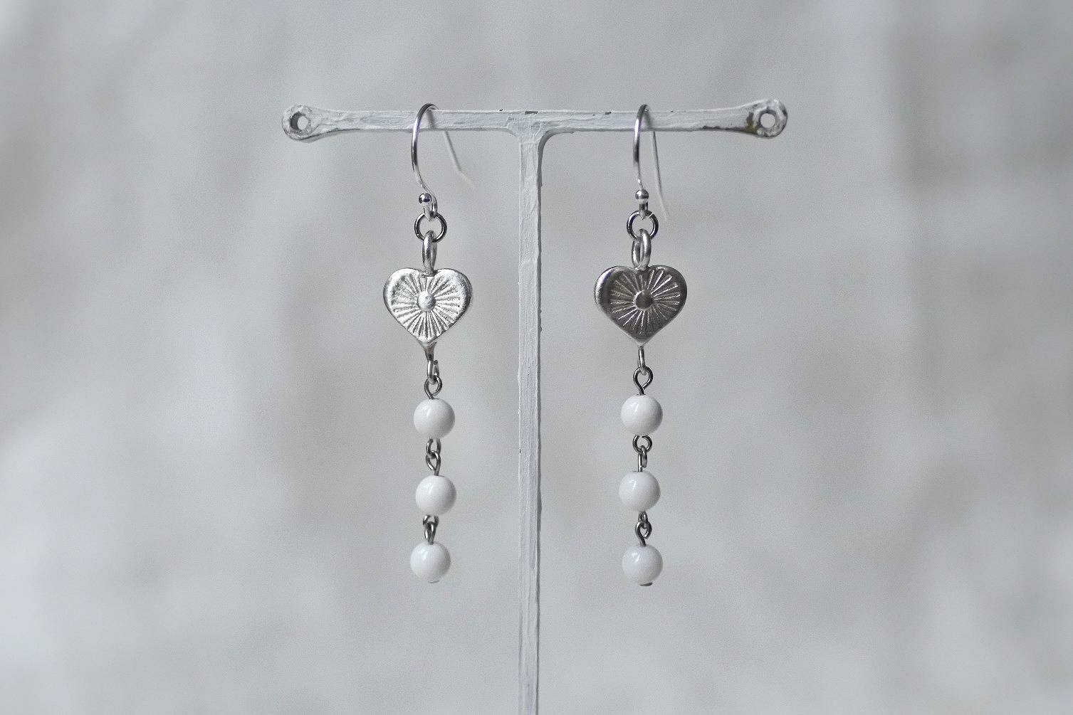 素材:カレンシルバー、ホワイトオニキス、合金金具(留め具とハートをつなぐわっかの金具・石をつないでいる金具)