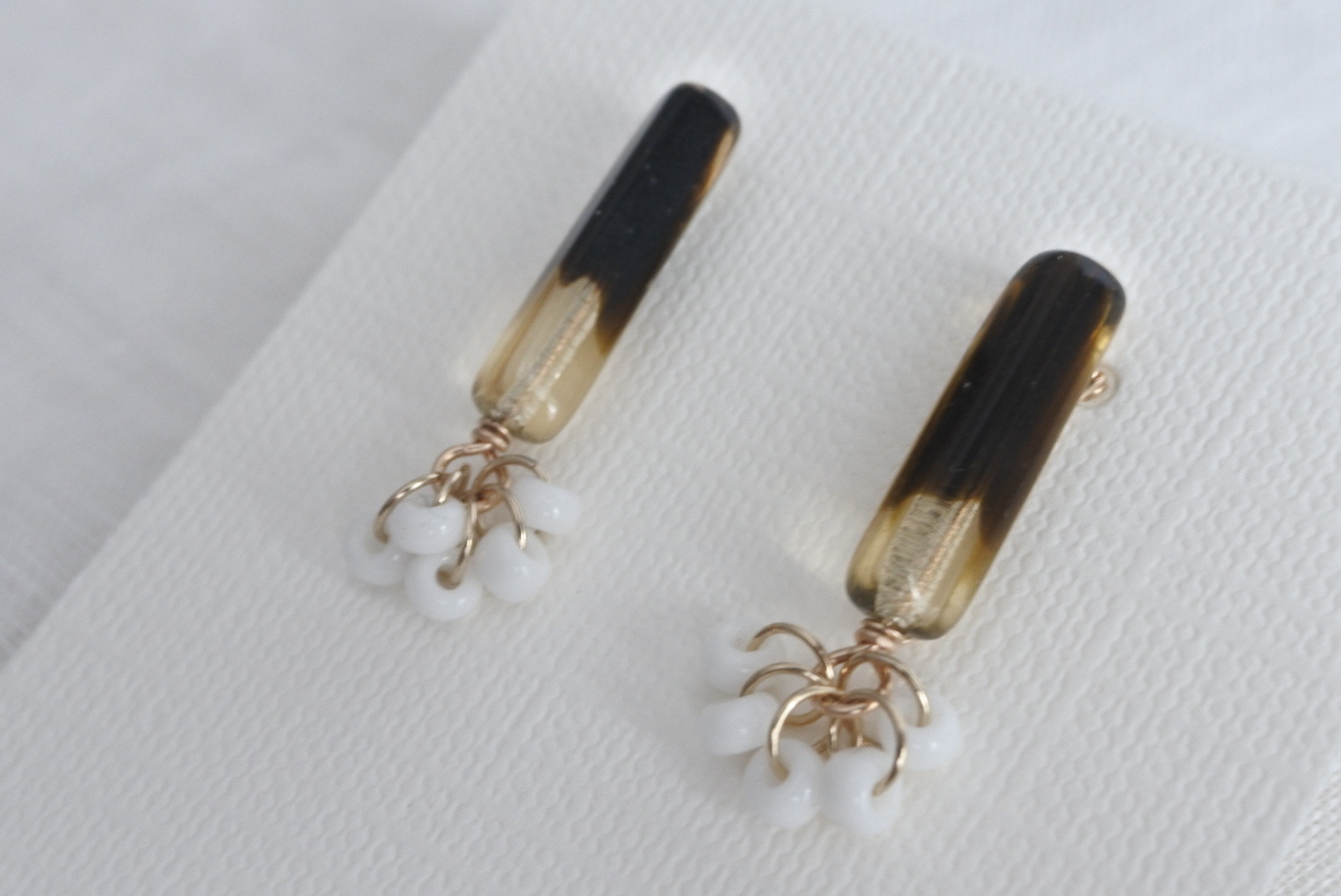 素材:ドイツヴィンテージビーズ、ジャパンヴィンテージビーズ、合金金具、14kgf(ポスト・ワイヤー)