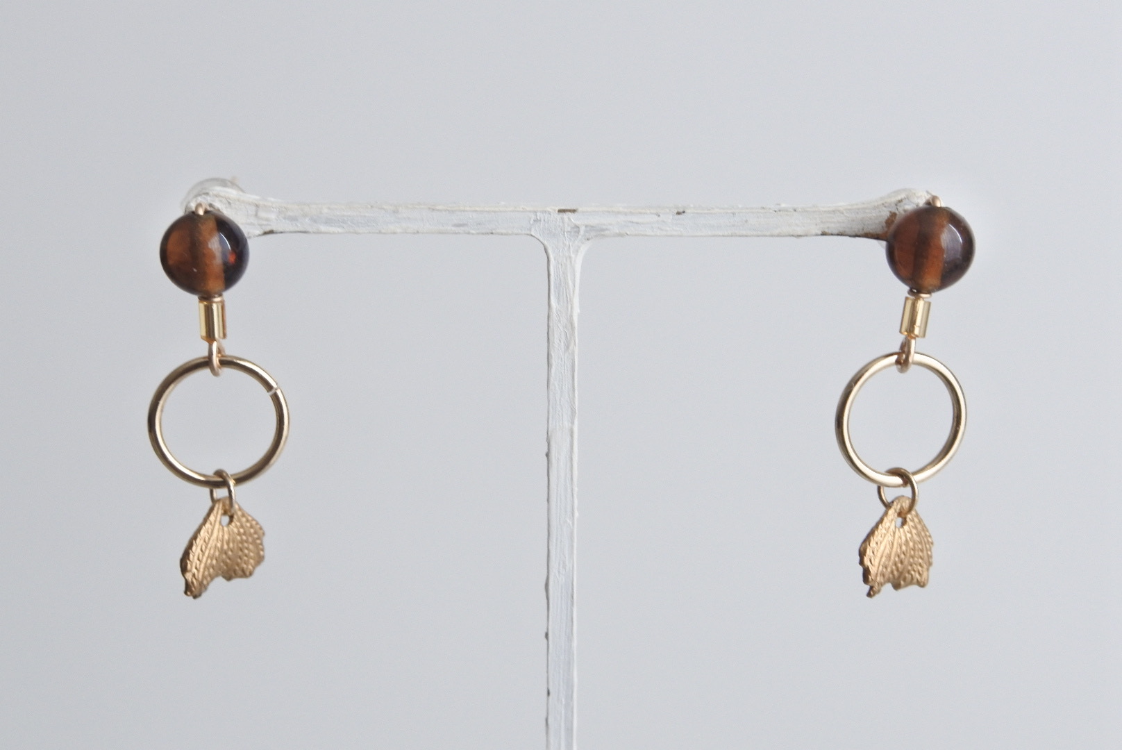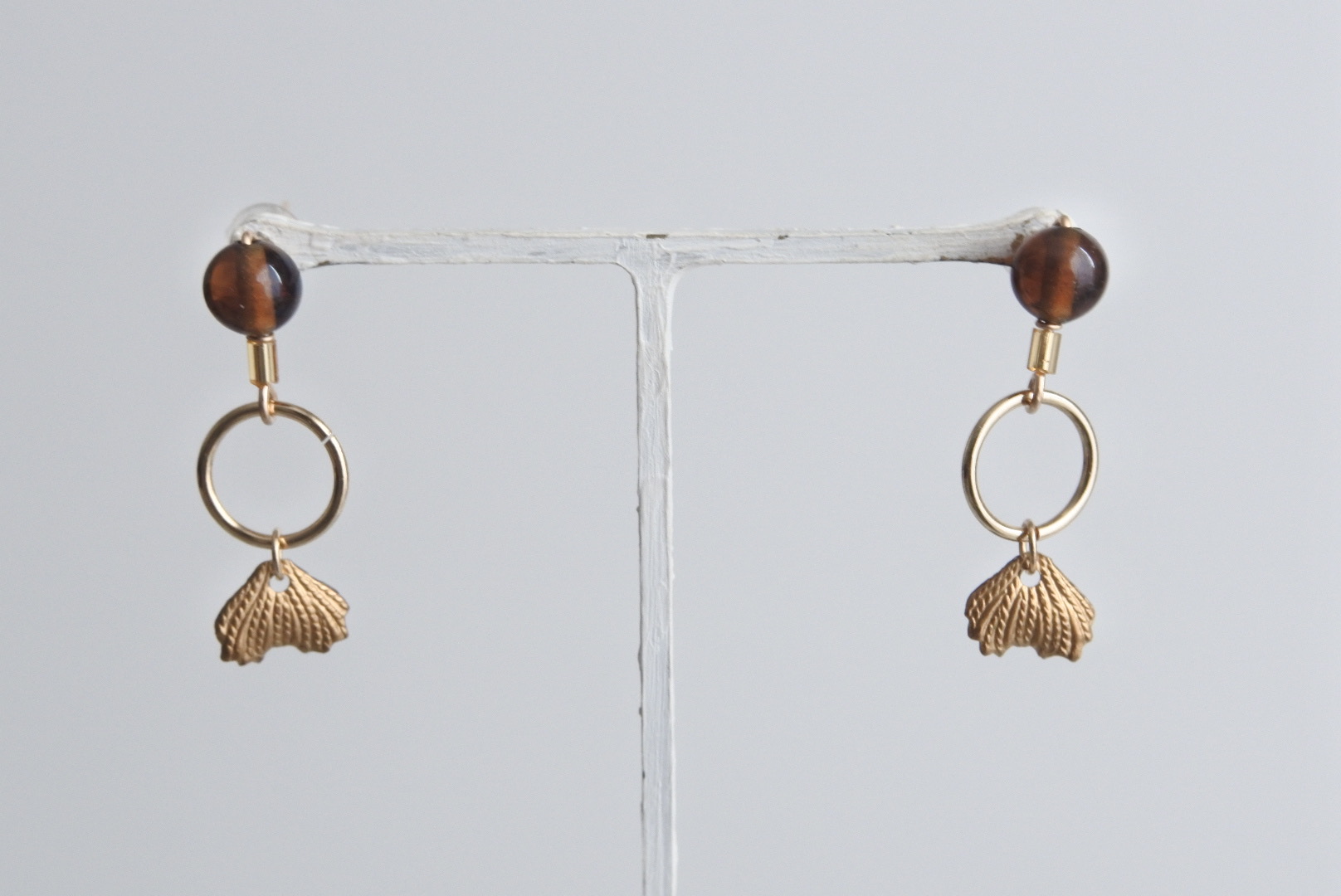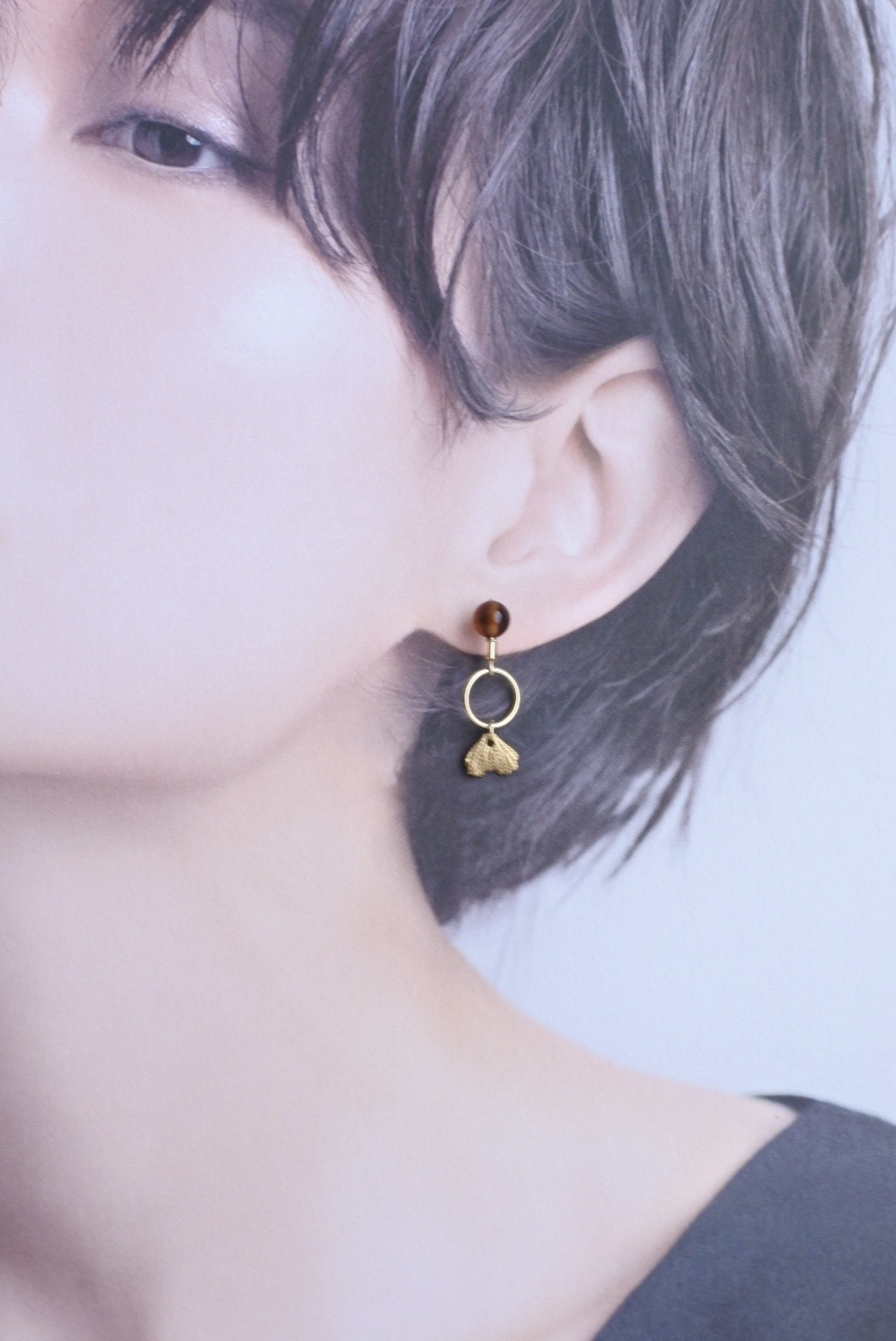 下端で揺れるのは、繊細な凹凸が美しいUSA製の真鍮パーツ。使い込むほどにアンティークのような風合いへ変化していく過程もお楽しみいただけます。