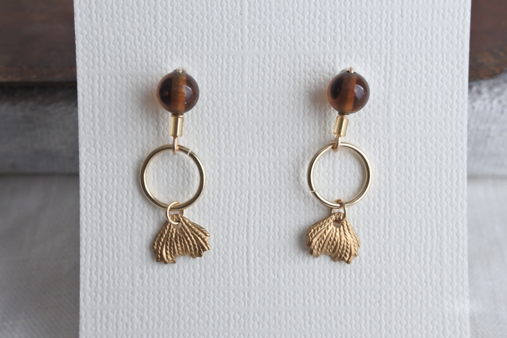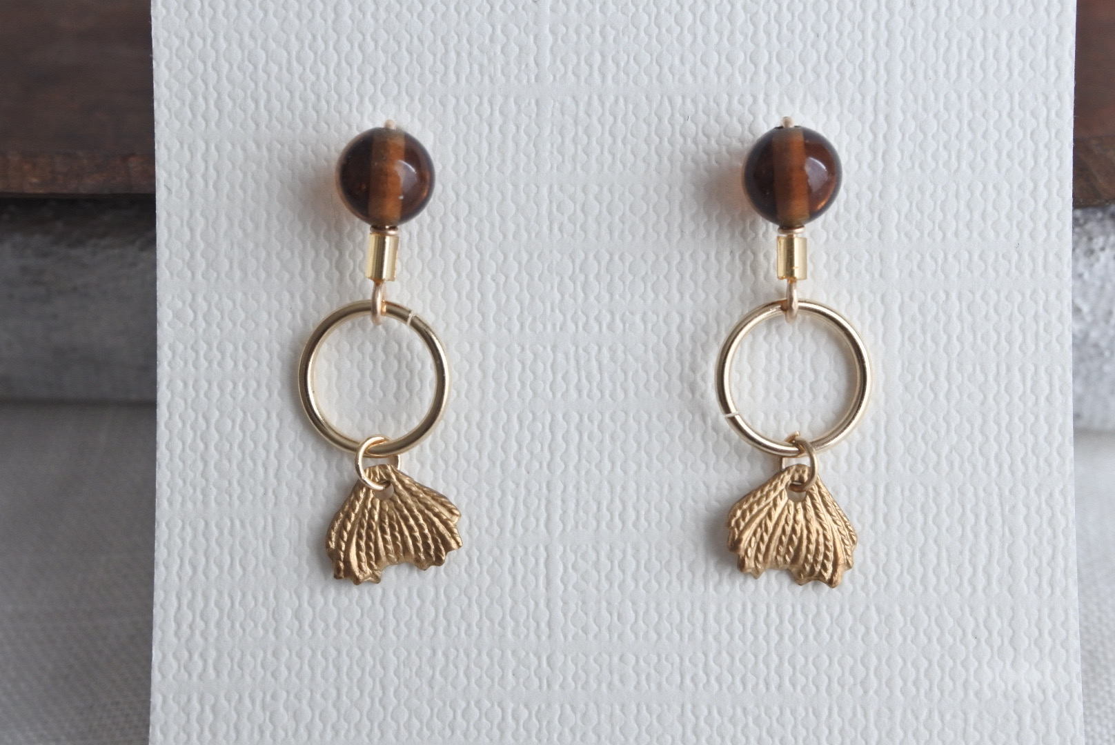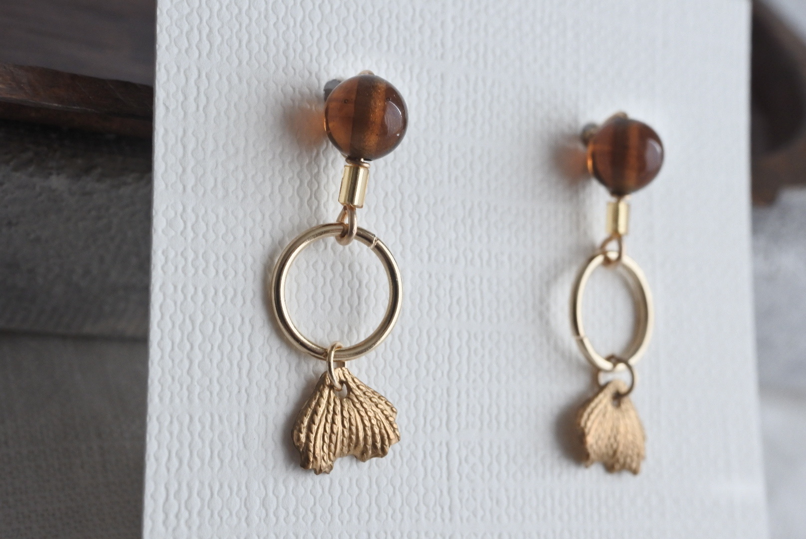 下端で揺れるのは、繊細な凹凸が美しいUSA製の真鍮パーツ。使い込むほどにアンティークのような風合いへ変化していく過程もお楽しみいただけます。