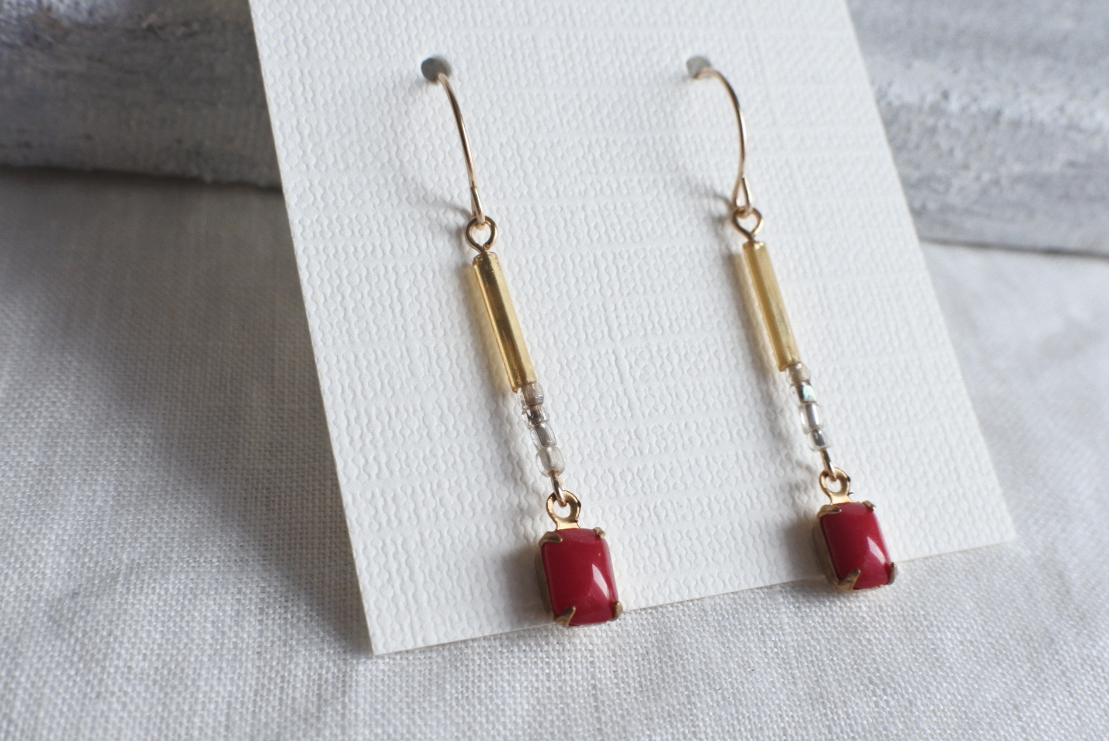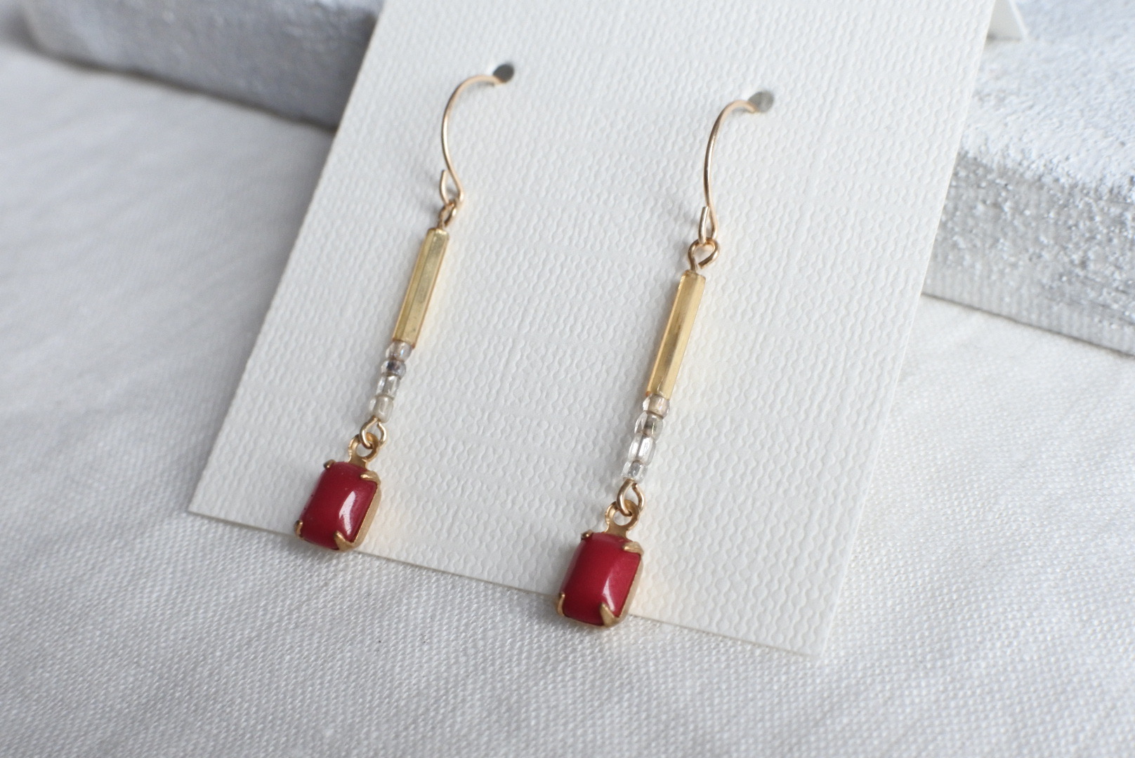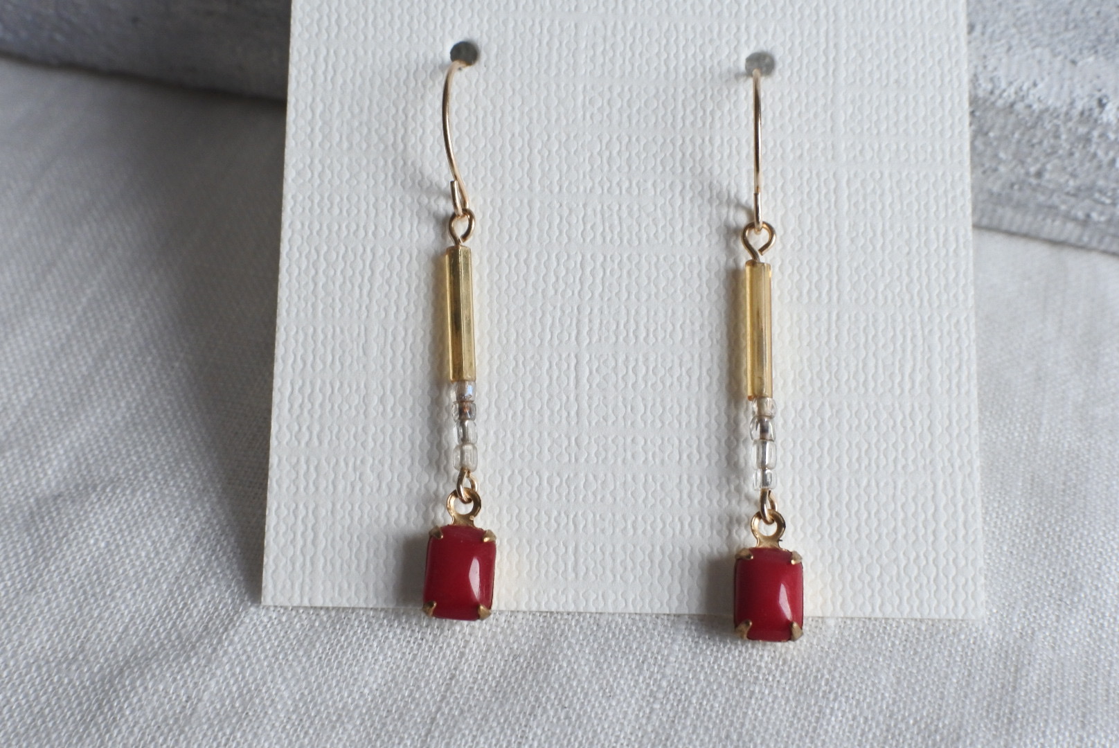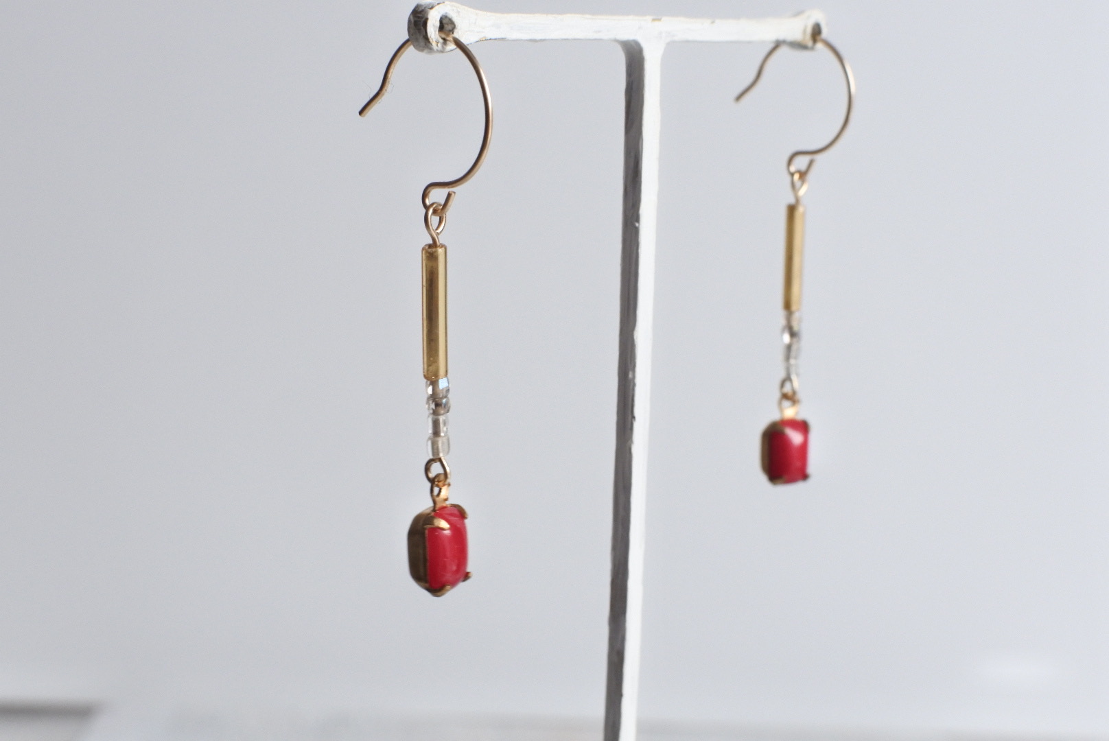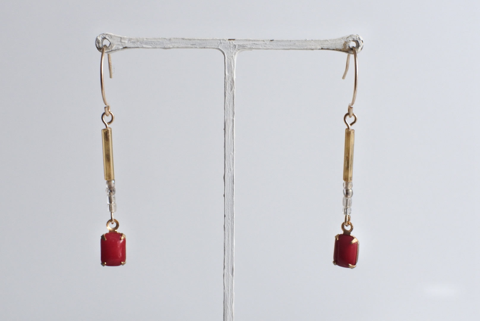 素材:伊アンティークビーズ2種、ジャパンヴィンテージビーズ(枠は真鍮製)、合金金具