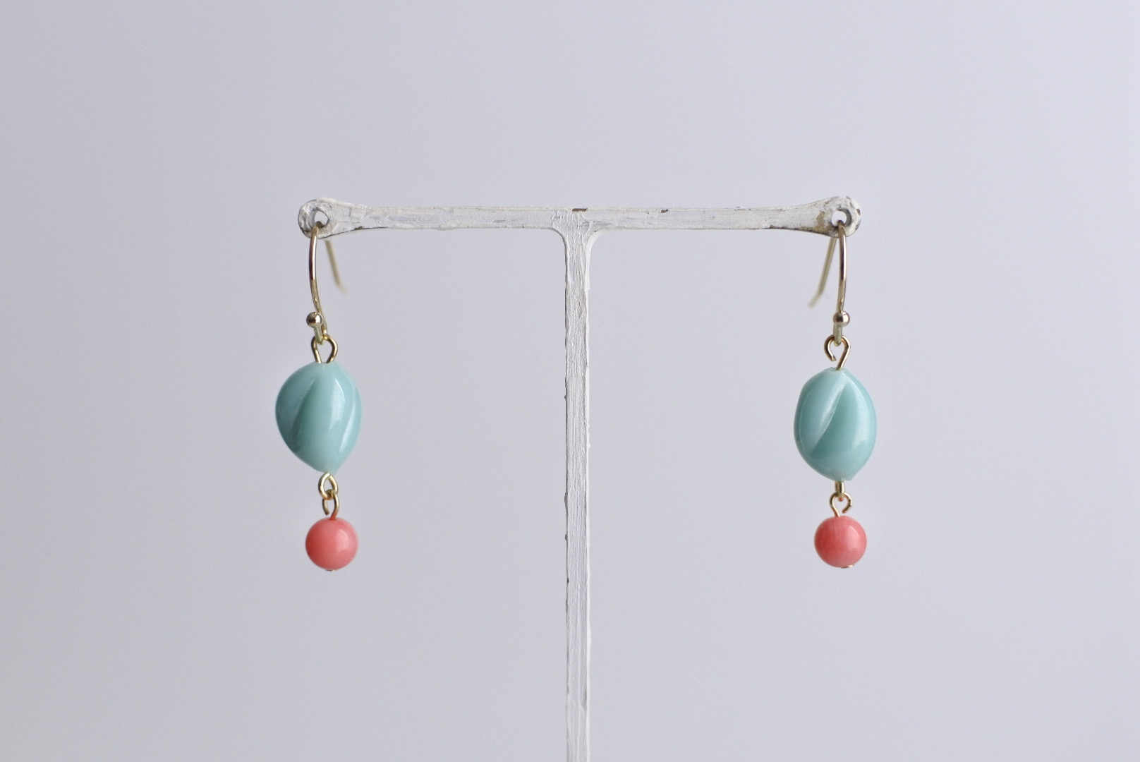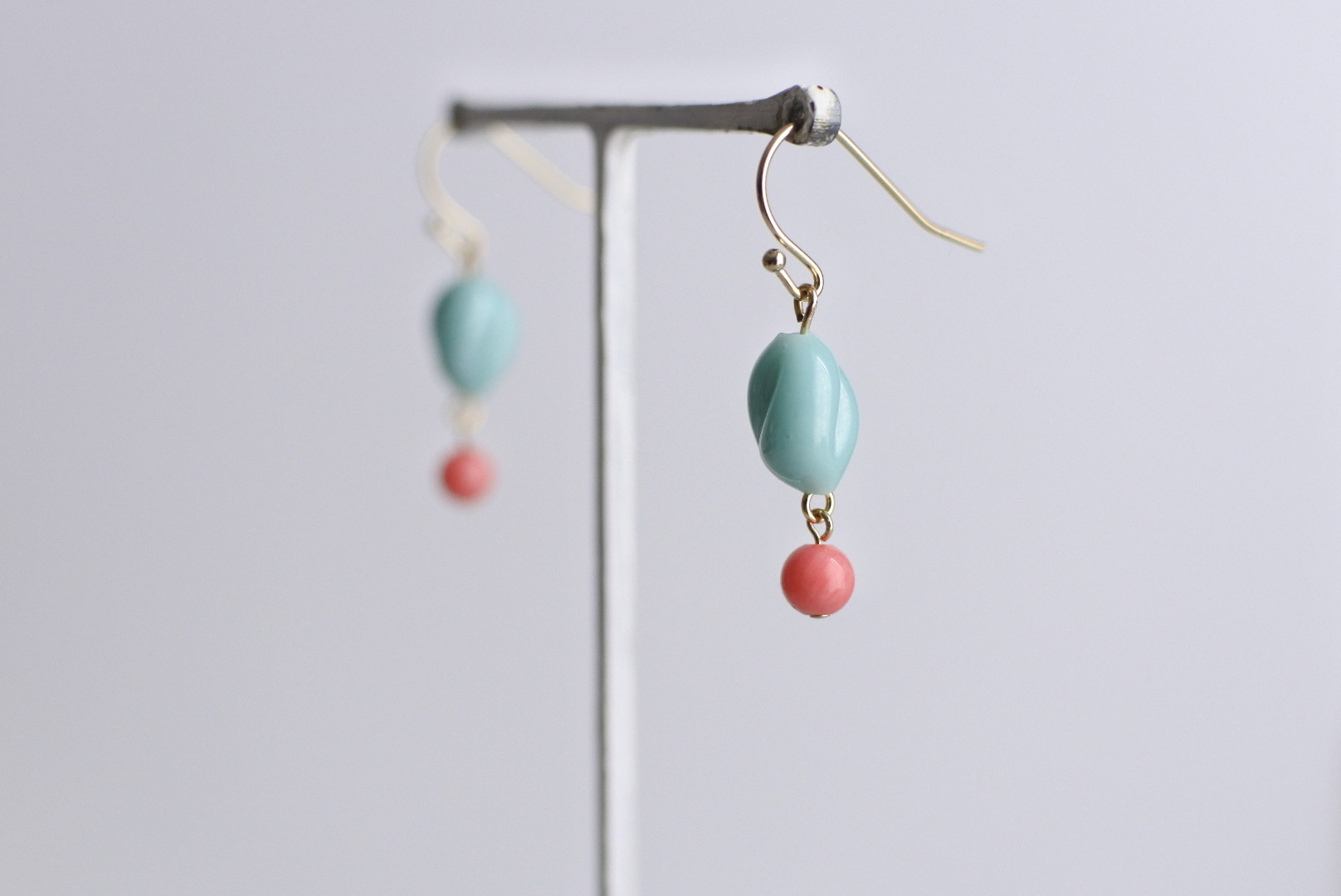 ターコイズのカラーのヴィンテージビーズが少しレトロな味わいがあり、個性を与えてくれます。