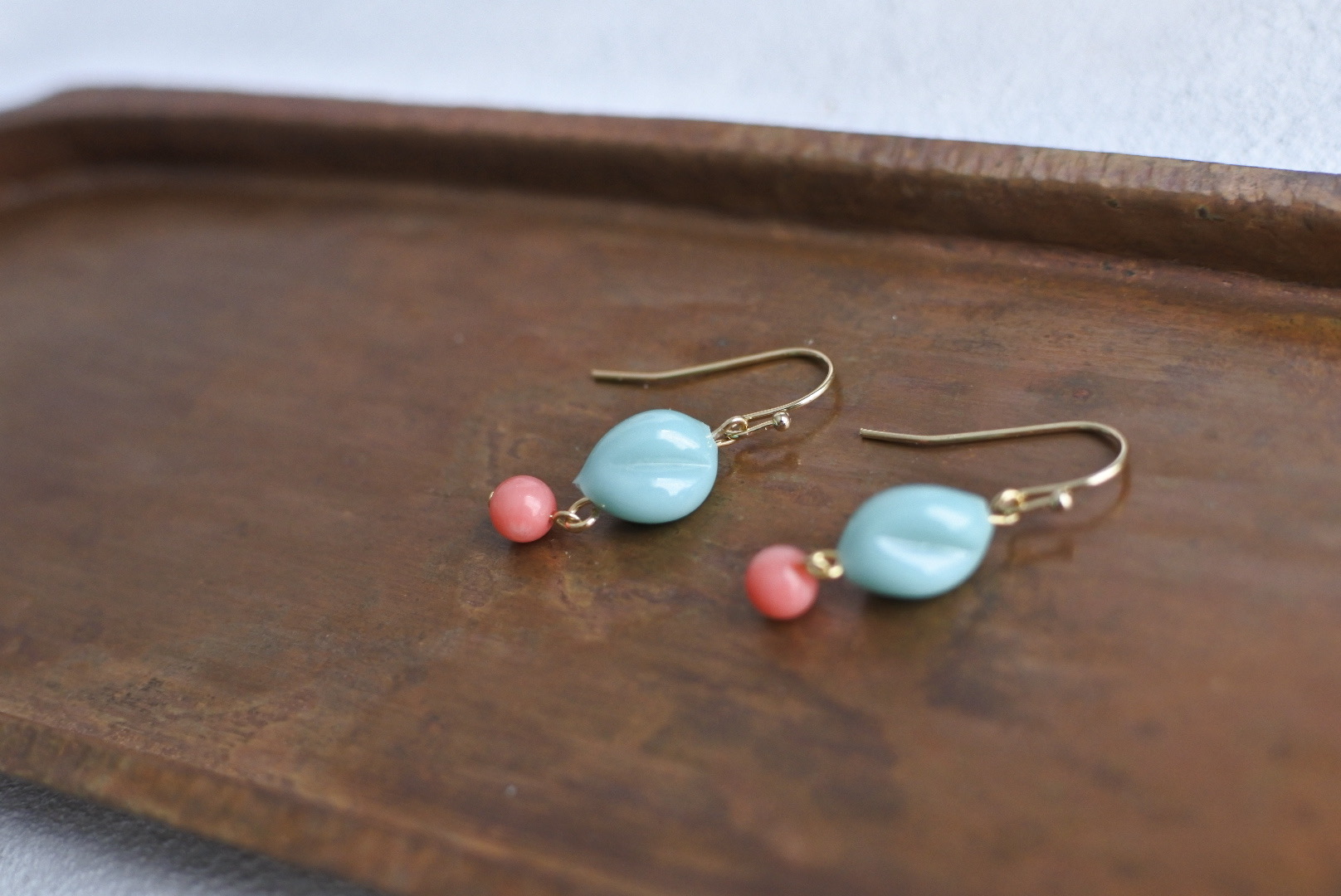 素材:ジャパンヴィンテージビーズ、染めサンゴ、合金金具